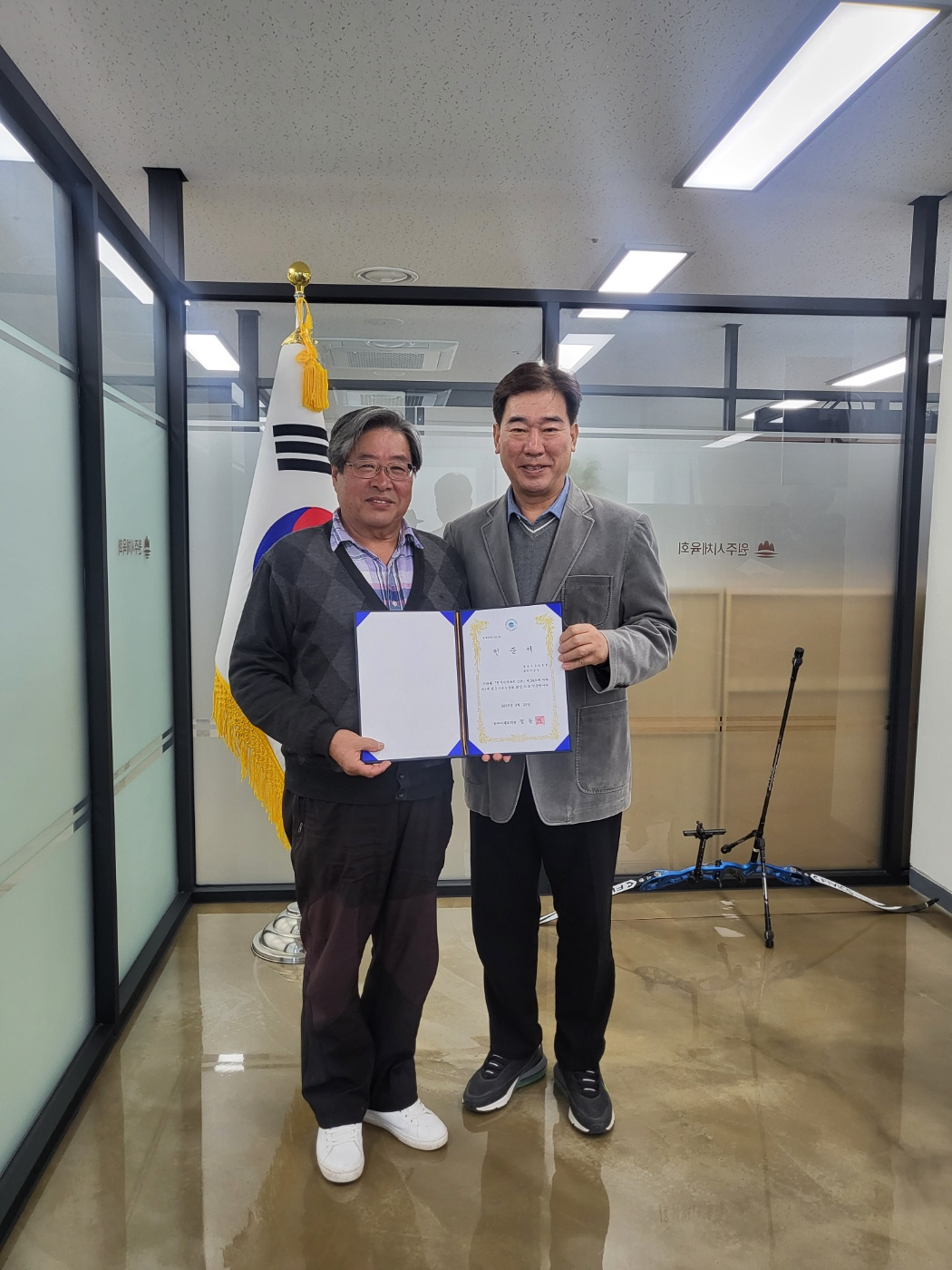원주시체육회(회장 정동기)는 3월 21일(금) 11시 30분 원주시체육회에서 종목별 회장단선 인준서를 전달 하였다.